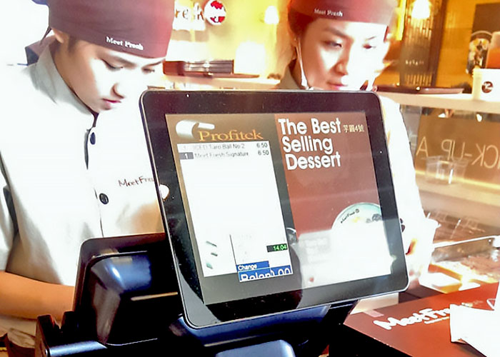 Knowing they would inevitably see long lines of hungry customers, Meet Fresh knew they needed a system that was not only reliable and efficient to handle the line of hungry patrons, but they really needed one to match the environment. Meet Fresh has a somewhat dark palette of colors for their image, and as such, they needed a POS solution to fit into that environment. They wanted it to be stylish; something that looked like it belongs there. They didn’t want a large system that invariably looked like a computer sitting there… it needed to be attractive. Additionally, they needed the peace of mind that they would not be calling servicemen out to repair it… downtime is income lost, and their system needed to not only be high performing and capable of running robust software, but also dependable and reliable enough that they knew it would respond immediately to commands, it wouldn’t freeze up, and it would optimize the order entry process.